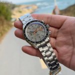 欧米茄超霸系列赛车计时腕表44.25毫米至臻天文台计时表 DDD 型号:329.32.44.51.01 1 DDD 1957年,欧米茄推出专为赛车运动而设计的[Speedmaster超霸系列],这一设计也被称为“Racing Dials赛车盘” DDD 哑光黑色熊猫盘,橙色和白色亮漆指针及白色18K金箭形小时刻度均覆以白色Super-Luminova夜光涂层,一端以橙色标志进行点缀。 DDD 表径44.25Mm DDD Tvs自主研发9900型至臻天文台双T机芯,3点盘为 12小时 和 60分钟 累积计时