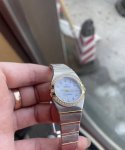 最新款全玫瑰金壳套钢带抛光壳欧米茄女款星座系列28Mm石英腕表...