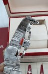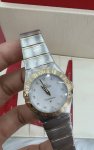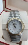 欧米茄4代星座27是指欧米茄品牌下的一款手表,这款手表的表壳直径为27毫米。表壳和表链由18K黄金和精钢材质精制而成,表圈铺嵌有明亮式切割钻石,总重达到0.5克拉。表背经过垂直磨砂处理,并印刻有星座天文台徽章图案。蓝色pvd材质表盘上带有太阳光芒射线图案,小时刻度由单切割钻石点缀,总重0.12克拉。18K金抛光时针和分针覆以白色夜光图层,以确保在任何光线条件下都可以轻易读取时间。这款手表提供动力的机芯是欧米茄1376型石英机芯,这是一款因其高精准度备受赞誉的机芯,电池寿命长达32个月。此外,这款手表的防水