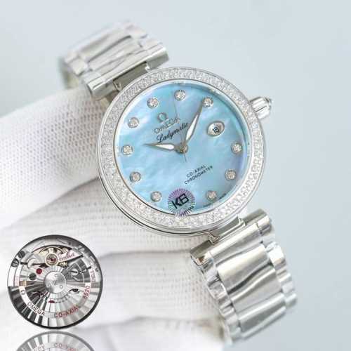 白钢 金 带钻加50 精品 V4版 欧米茄 碟飞ladymatic鸟巢系列女士机械腕表,妮可基德曼代言 搭载cal.8520 8521同轴自动机械机芯 前后蓝宝