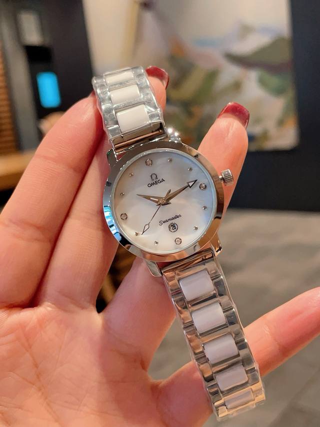 / 白 金黑Omega欧米茄 时尚女士石英腕表,女神范十足的一款手表,超强时尚设计理念,进口石英机芯,顶级镀膜玻璃镜面,多颜色进口小牛皮搭配原装针扣,尺寸28Mm,