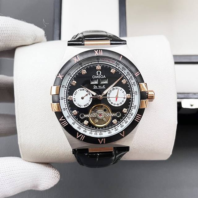 / 白 金 欧米茄-Omega火爆新品 搭载全自动机械机芯 316精钢表壳 简约时尚 优雅尊贵 矿物质强化玻璃镜面 真牛皮表带 商务休闲 精致型男首选 直径40Mm