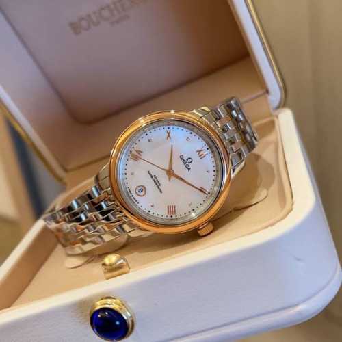 白 金 钻+20 台湾厂 搭配红色包装礼品袋欧米茄蝶飞石英系列腕表 腕表女装尺寸27.4Mm 男装34Mm 原装扣 进口瑞士石英机芯 316精钢表壳 防刮花玻璃