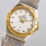 38女神节!3S推荐四代星座钢带包金,最高版本 原装机心欧米伽-Omega 型号123.15.27.60.554。四代星座永恒经典款! 星座系列表壳表带光面款,此款硬货来了,非常过硬的内部渠道,代工厂内部留出为数不多的原单欧米茄!好东西不是经常都有.看中赶紧下手,此款星座系列.石英.钻石女表,手表直径27Mm.原装欧米茄机芯型号2800.01命名Cal1376石英机芯。防炫目蓝宝石镜面.手表全套316L钢材无电渡钢水.永不掉色,蝴蝶表扣Logo由18K黄金打造.持有中国Gtc检测机
