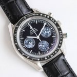 皮 钢 欧米茄 Omega 超霸系列 超霸“欧米茄的灵魂”手动3861背透款 最新登月第四代超霸腕表 31 .4 .99 2是一款经典的计时码表,尺寸和外观:腕表直径42Mm,厚度13.6Mm,采用精钢表带和表链,耐磨损蓝光玻璃,平面印刷欧米茄标志。表盘设计:黑色+陨石两色的搭配经典而严肃,Tachymetre测速圈采用线性刻度,凹陷盘面,对称式计时数字盘和小巧的棒头指针。计时秒针略超出盘面刻度,以保证各个角度观看都能清晰指示。三眼计时圈位于9点、3点和6点位置,分别用于显示日常走时秒针、30分钟计时和1