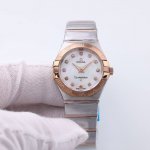 白钢 金 带钻加50 新款欧米茄 碟飞典雅最新款女表 搭配进口8521 8520机械 32.7Mm天然珍珠贝壳表面 蓝宝石玻璃 30米防水 无以伦比...
