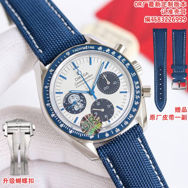 FFF Or厂出品,质量保证,老字号工厂P,口碑款式,最新配重版本!原装重量,欧米茄 Omega 超霸系列 全新Omg超霸“史努比奖”50周年纪念腕表霸气登场 专业月球表 定制版本,搭配原版蝴蝶表扣,赠送原厂皮带一副,两不误,任君选择!高端大气款式! DDD 表壳 表壳背部采用Naiad锁扣技术,确保雕刻文字始终保持正确的位置,而蓝宝石玻璃表背下印有月球背面影像与圆盘 DDD 表盘 仿造Ag925纯银表盘打造饰以银灰色电镀涂层看起来更逼真,9点位置的蓝色表盘压印“史努比”图案的银质徽章更显独特! DDD