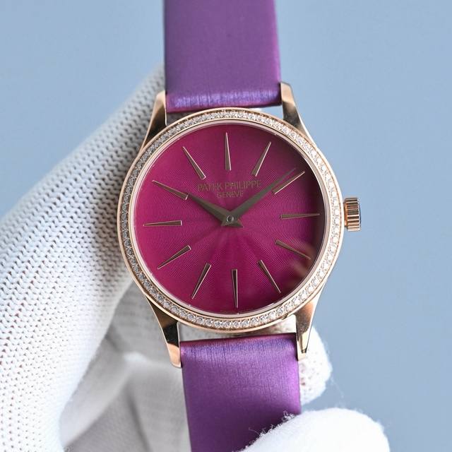 新品女款百达翡丽古典表系列 4897腕表,强势推荐! DDD 古典魅力,经典重现,正装表王震撼登场。完美还原表中王者的独特质感和简约格调。 精彩细节 DDD 1.搭配定制版机芯改Cal.215自动机芯,动能储存长达45小时,振频28800每小时。 DDD 2腕表尺寸33Mm,尺寸数据完美吻合,佩戴轻便,还原体验。 DDD 2.采用与原装一致的锅盖型穹顶玻璃,特镀有双层抗眩晕增透镀膜。 DDD 3.表盘搭配72颗钻及指针和时标釆用日晖纹装饰,光泽质感更加柔和,让你每次看时间都心花恕放,之后再采用镀铑工艺处理