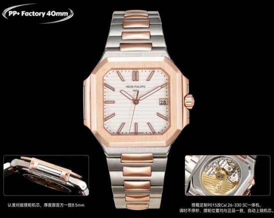 pp+ Factory百达翡丽 调时不停秒,认准对版摆轮机芯,厚度跟官方一致8.5Mm。百达翡丽 新品Cubitus 7128 中号 40Mm 2025 New