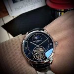 男人挚爱 飞轮腕表 最新 :百达翡丽最佳设计独家首发 类型 :精品男士腕表 表带 :真牛皮表带 机芯 :全自动机械机芯 镜面...