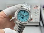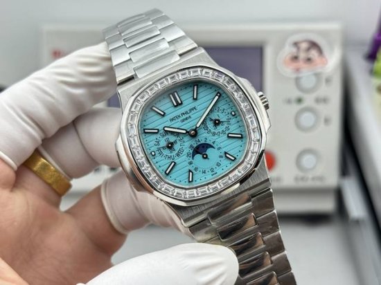 白 金 钻100 新扣100 Ddd 百达翡丽5740 01--超复杂多功能鹦鹉螺重磅登场,迄今推出的首款Nautilus复杂腕表,以超复杂的工艺技术打造休闲运动腕表。 Ddd 1小身板大能量:40Mm 尽揽以下功能∶左边窗口位置显示年份,右边窗口位置显示月份、9点位置处是星期、3点位置处是月份以及6点位置处是24小时与月相显示盘。 Ddd 2机芯采用版Cal.240自动上链机芯,在实现外观的逼真前提下,功能一并完美诠释。 Ddd 3改装大师独立制表人,倾情参与定制改装表盘颜色,给予独一无二的腕表增添有趣