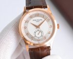 古典魅力,经典重现,新品 百达翡丽、古典表系列5123R-001 ,百达 pp 两针半 正装表王震撼登场。完美还原表中王者的独特质感和简约格调。 精彩细节 1.腕表尺寸数据完美吻合正品,佩戴轻便,还原正品体验。2.采用与原装一致的锅盖型穹顶玻璃,特镀有双层抗眩晕增透镀膜。3.表盘标识和指针的边沿全部采用手工润饰倒角 一套工艺下来非常不易 ,之后再采用镀铑工艺处理,确保光泽度和质感不亚于原装。 机芯 采用素质坚挺,口碑一致的海鸥手动机芯,动力储存长达42小时。 表带 扣 手工缝线小牛