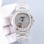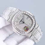 百达翡丽 满天星 满钻 鹦鹉螺系列 57191G-001,搭配西铁城改324机芯,上下蓝宝石镜面。全新Nautilus展示了百达翡丽休闲优雅经典系列的魅人新设计