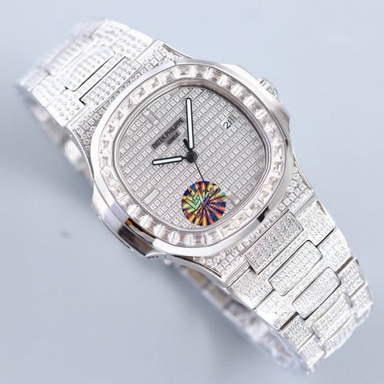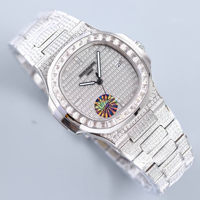 / 百达翡丽 满天星 满钻 鹦鹉螺系列 57191G-001,搭配西铁城改324机芯,上下蓝宝石镜面。全新Nautilus展示了百达翡丽休闲优雅经典系列的魅人新设计