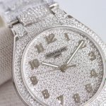 百达翡丽Twenty~4系列7300雪花钻满天星闪爆登场。赠原装便携皮盒 表壳:36Mm一体式矩型表壳满镶351颗雪花一致 表圈及表耳:原装同步阶梯式高低位处理