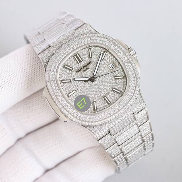 统一价: DDD “最接近正品的8.3Mm”满钻鹦鹉螺!!! DDD E7 Factory 重磅推出百达翡丽 5711系列奢华镶满钻限量版鹦鹉螺,钢表之王,全网最佳解毒方案!细节方面: DDD 1搭配定制版9015一体Cal.324全自动机芯。 DDD 2316L定制级人体工程学表带! DDD 3钢带中珠是钻石型的,与正品相结合。 DDD 4直径40Mm厚度8.3Mm与正品一致 DDD 佩戴5711 1A既彰显青春活力,又由内而外散发出一股浓浓的沉稳气息,是一款当之无愧的 钢表之王』!欢迎您的品鉴!精致推
