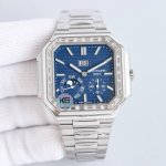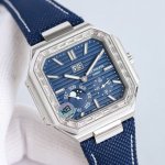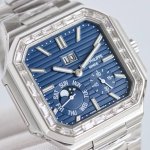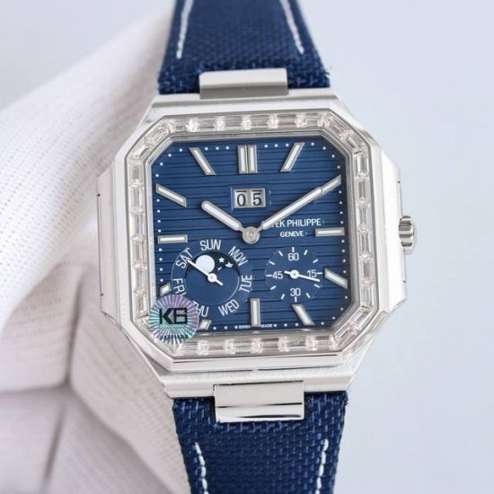 重磅推出钻圈新系列方形百达翡丽Cubitus 5822腕表,明星同款。 DDD 这款牛仔色表带深蓝表盘,既经典又时尚,优雅与高级感完美平衡。 DDD 亮点特色:功能日期显示,星期显示,月相都是真功能。机芯:搭载改装240ps偏心迷你锤,机芯走时稳定表带:表面定制牛仔纹背面小牛皮,扣子折叠原装扣款式,在表壳六字位镶嵌一颗0.02克拉方钻石是一个低调亮点,蓝宝石镜面玻璃,表壳:尺寸45毫米厚度11Mm,为表壳对角线长度 即10点位至4点位 ,因为表壳近似于方形,上下边的宽度会小于这一数值,所以视觉效果并不是很