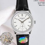 Factory 74克配重版 DDD 百达翡丽古典Calatrava 6119系列 DDD 1:延续经典的浅薄风格 DDD 尺寸39Mm,厚度8.1Mm DDD 2:316L电镀白金及纳米玫瑰金表壳,整壳高光处理搭配抛光巴黎钉纹表圈及修长表耳,整体线条修长且精致,展现极致的优雅和简约 DDD 3:表盘为沙粒搪瓷研磨及垂直缎纹拉丝,呈现出温润的光泽,搭配Obus风格指针和时标 DDD 4:21X16进口小牛皮搭配最经典的对版形针扣 DDD 530-255ps独家研发改进二针半手动上链机芯 DDD Sdf F