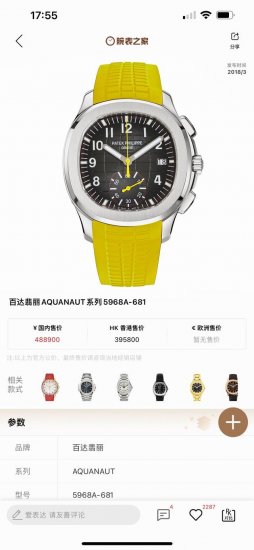 Mma百达翡丽 手雷系列 Aquanaut系列 Rb2 腕表型号:5968A-001 42.2毫米不锈钢表壳 计时指针、精确至四分之一秒的外缘轨道式刻度、60 分钟累积计时器 以不锈钢材质的外壳,橡胶表带相搭,充满了时尚、阳光的运动气息,表壳采用了圆润的八角形表圈的经典轮廓,表圈经过倒角抛光处理之后更细腻精致,正面抛光,侧边磨砂处理的表耳略微弯曲,呈现出自然的弧度,将腕表更贴合于佩戴者腕间。