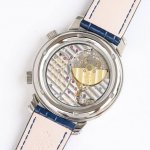 V3升级版 最高版本 顶级复刻 百达翡丽 Pp翡丽 星空5102天月款日内瓦苍穹系列!R46 这款星空腕表独具特别星象功能,蓝色圆表盘上就能欣赏日内瓦苍穹图,还有金色月球运行轨迹,工匠大师历时20个多月,采用进口9015改造而成的珍珠陀, 和正品一样机芯,表盘上的月亮会根据天空的月亮月满圆,月蚀弯的情况自动变化 表壳前后玻璃采用先进技术处理让玻璃折射光提高,让表盘看起来更加通透 似乎没有玻璃的感觉,5字位把头调星空盘转动。壳套花重金采用cnc进口模具深雕刻 立体感凹凸感 超强。升级了24小时