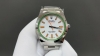 古驰 Gucci新款中性潜水表,40 Mm表径,以品牌标志性“猫”图案和夜光显示为表盘。应用不锈钢材质,经缎面拉丝润饰,并搭配与表盘配色一致的橡胶表带。表盘单向