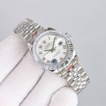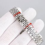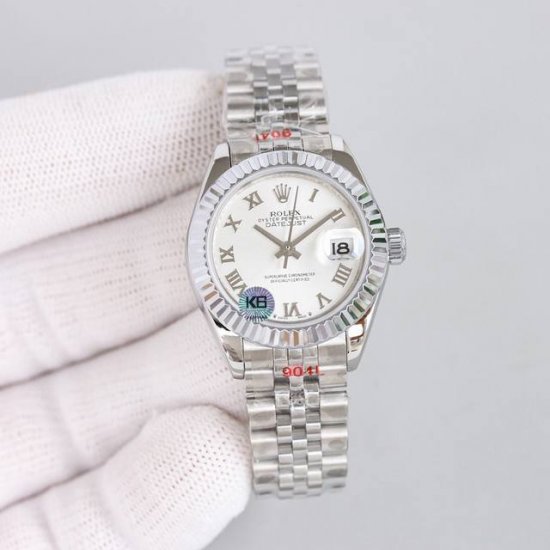 劳力士日志型28Mm DDD 专为女性而设计的经典时计,技术而美观的结合不负期望,本次日志型28Mm再次从细节入手,本次特点: DDD 1.外壳以最纯粹的904钢原材料制造,狗牙圈以白金材质打造,Cnc技术让圈口菱角更加立体,无毛刺,直径、内径尺寸吻合原装!表壳厚度10.3Mm与原装一致! DDD 更提一点是表冠白金材质与圈口搭配吻合原装,表冠旋入式双扣锁双重防水系统! DDD 2.镜面抗刮损蓝水晶玻璃,防反光凸透式放大日历窗! DDD 3.劳力士表盘特点的皇冠Logo,C Factory还是技放术攻克了
