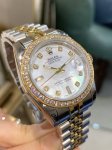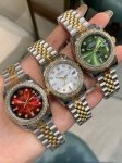 劳力士日志型31Mm腕表 三色盘面,钻光流转的腕间艺术 DDD 31Mm的精致尺寸,承载劳力士对优雅的极致诠释。8颗钻时标搭配2颗方钻表圈,让每一寸光影都成为奢华的注脚。 DDD 热烈红盘,是自信女性的气场宣言,在腕间点燃时尚火焰;活力绿盘,如春日新芽般清新灵动,为穿搭注入蓬勃生机;贝母白盘,似月光洒落腕间,温润中透着高级质感。间金表带的经典设计,将奢华与日常完美融合,无论是职场通勤还是社交赴约,它都能成为你的风格名片,让每一次抬手,都绽放出独属于你的魅力光芒。 DDD