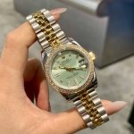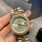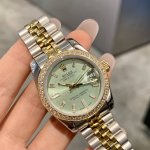 劳力士日志型31Mm腕表 10颗方钻的璀璨宣言 在腕间方寸,劳力士以31Mm的精致尺寸,为女性打造出优雅与奢华的双重盛宴。11颗方钻环绕表圈,每一颗都如时光的璀璨注脚,在光影间折射出凌厉又迷人的光芒,将高级感拉满。 无论是冰蓝盘的清冷雅致,薄荷绿盘的清新灵动,还是贝母白盘的温润婉约,搭配间金表带的经典质感,都让这款腕表成为穿搭的点睛之笔。它是职场女性的气场标配,也是社交场合的吸睛焦点,更是镌刻在腕间的永恒格调,让每一次抬手,都成为品味与身份的无声彰显。