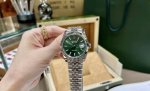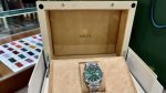 / 劳力士日志外观设计:表径为41毫米,表盘颜色为薄荷绿色,清新独特,在光线照射下质感细腻。表圈采用18K白色黄金制成的三角坑纹外圈,是劳力士的经典元素,闪耀且辨识