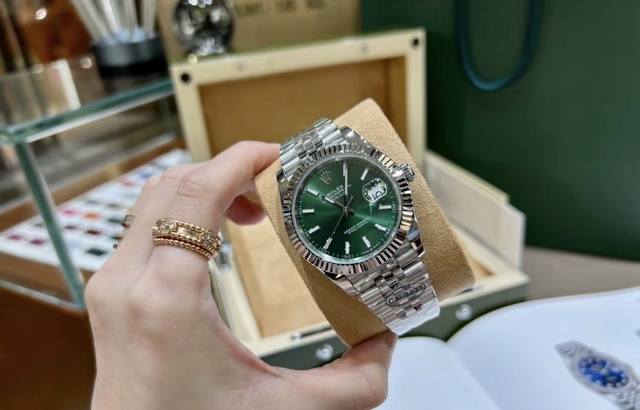 劳力士rolex 双历 星期日志型系列 40Mm 直径 40Mm 机芯 搭载进口全自动机械机芯 圈口 劳力士ringcommand三角坑纹 光圈 镜面 防刮蓝宝