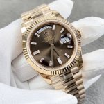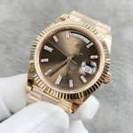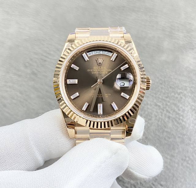 劳力士星期日历型系列228235拿铁咖色表盘腕表,搭载天津海鸥2836机芯, 独家实拍,真的很压手,玻璃通透,日历对版,针有中轴,牙圈立体。上手就可以玩,手感非常好。从此告别轻飘飘。配重款Dd,和一样很压手!40Mm直径。
