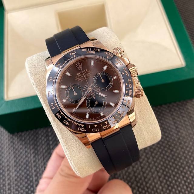 好品质一眼见底!Rolex-迪通拿,棕色盘此款外圈实物为黑色陶瓷搭配进口顶级4130机芯! DDD 鼎力巨作 匠心打造 DDD 每一块腕表均严格检测 近乎零返修,劳力士当下最热门的一款腕表,专柜需要无限期排队购买,公价十二万多,二级市场翻倍需要二十四万多才能买到。当然能摆上我们的货架 一定是行业标杆 潜心将近一年倾力打造 且为本人自留款上手效果与正品一致,一般人无法区分真假,验表师也要用放大镜仔细观察才能区分。所以平常日常佩戴在手上就不用过多担心真假问题了! DDD 搭载与正品一致的 4131定制机芯 所