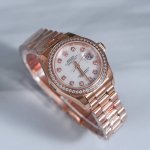最新版本!劳力士28Mm女款尺寸日志型腕表!最新黑色贝母定制真钻款!在欧美最火的款外圈48颗真钻!内圈10颗Vs级别真钻时标!每一块表都中国Gtc权威机构出具的真钻证书!一表一码不重复。搭载原装金瑞士Sw2688机芯,一芯难求!长期属于缺货状态!功能同步原装,日历瞬跳。表盘尺寸28毫米女士最完美的尺寸,表壳表带材质采用904L不锈钢18K玫瑰金锻造,间金表带不露白,扣子不露白,认准独家品质!市场通货都是露白的,欢迎大家对比。我们是真真正正采用原装瑞士进口机芯,走时精准零误差零售后。支持任意拆机查验!表背底