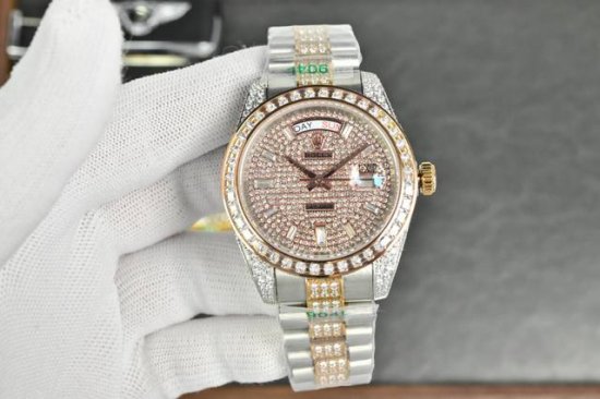 白钻 金钻 劳力士巅峰之作.升级版全网最具性价比劳力士 星期日志型满天星40Mm 满钻土豪版奢华18K纳米技术!2000+颗Aaa锆石精心打造!采用全自动进口机械机芯改版刻字3255机芯,整壳同钢带均为镶嵌施华洛世奇水晶钻!使的灯光下闪耀效果更佳!全新搭配三组中钻钢带!41Mm原装尺寸,真空电镀不掉色,送礼最佳奢华推荐! DDD