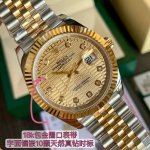 Rolex- 劳力士日志型!41Mm最新款。真正的18K包真金,永不担心褪色现象!表盘镶嵌10颗天然真钻时标!持gtc中国权威认证证书,百分百真金可验可查询!三码合一扫描二维码即可入网查阅手表配置信息和真钻检测报告!劳力士日志型系列是经典腕表的典范,是永不过时,经典中的经典款。装载瑞士sw200机芯,终身保固!表壳采用劳力士特有的黄金钢 904L不锈钢和18K黄金的组合 材质。表冠采用三扣锁上链表冠,三扣锁上链表冠可以说是劳力士专为潜航者型研发的三重防水系统。三扣锁装置由10组不同零件
