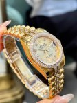 表带镶嵌钻石 Ddd 白壳 金壳 Ddd 劳力士31毫米尺寸、表带采用纯手工镶嵌钻石工艺的劳力士女装日志型 Datejust 腕表,从外观细节能看到表圈和表带都做了钻石镶嵌的定制升级,盘面分别有金色、酒红色、白贝母、绿色等不同配色,表壳 表带则涵盖全黄金、间金 黄金+精钢 两种材质。 DDD 这类后镶钻的劳力士女装日志,在保留原表机芯和核心结构的基础上,通过手工镶嵌钻石提升了视觉奢华感,也是不少女性选择轻奢腕表的热门款式。 DDD