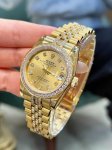 表带镶嵌钻石 白壳 金壳 劳力士31毫米尺寸、表带采用纯手工镶嵌钻石工艺的劳力士女装日志型 Datejust 腕表,从外观细节能看到表圈和表带都做了钻石镶嵌的定