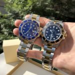 非市场普通版本、真正意义上的金表来啦 通体包金18K黄金,厚度达5Um,Gtc中国权威认证证书,百分之百真金,联网可查 劳力士潜航者系列是经典腕表的典范,间金鬼号称水鬼系列中的鬼王,是经典中的经典 今天更新的是官方最新出的尺寸表径41Mm 搭载瑞士原装Eta-2836机芯,终身保固!表壳采用劳力士特有的黄金钢 904L不锈钢和18K黄金的组合 材质,搭配黑色、蓝色的表盘,Cerachrom陶瓷字圈和金涂层数字,既时尚又不失庄重。表冠采用三扣锁上链表冠,三扣锁上链表冠可以说是劳力士专为潜航者型研发的三重防水