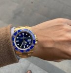 340Rolex 劳力士 潜航者 蓝盘全金 劳力士全金蓝水鬼男士自动机械腕表,品质,注意区分。六点钟位置玻璃上有劳力士皇冠防伪标,内圈有一圈Rolex字母防伪标。表壳左侧贴有同步二维码贴。一提到,人们就会想到劳力士,一提到劳力士,那当然非水鬼莫属啦,最抢手的一款,表盘40Mm,精钢打造,表盘外圈采用陶瓷表圈,超强夜光,区别低端货,表盘刻度表盘可以旋转,功能与一致,原装表扣,表扣可调节长短。全套包装手提袋保卡发票,瑞士进口机芯,走时精准,非常棒的一款,男人一辈子必须要拥有的一款。