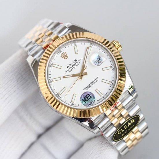 Clean厂C厂 新品劳力士41Mm日志型系列,1:搭载机械机芯,机芯及其稳定2:整表904L精钢 搭配Clean厂钢带 3:表盘颜色无限接近原装 4:全市场唯一日历字体对版 后续1-31号挨个字体真假对比 5:唯一做到指针夜光字钉夜光 做到同色 因为都是第三方工厂p加工+自购瑞士 C1+C3夜光粉 6:字钉皇冠唛头钉 全白金电镀处理 虽然Clean的款式不多 但是几乎款款均为精品 彻底解决世面上的大部分日志痛点 DDD