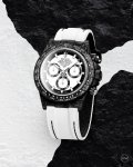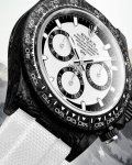 Tw厂 Rolex宇宙计时迪通拿系列之碳纤维定制版,腕表不仅佩戴轻便,外表坚硬。且每一只腕表都拥有独一无二的碳纤花纹材质。 表壳 腕表尺寸40X12.4吻合原装。Tw工厂P实力铸造碳纤维劳力士的独特风采。市场独家做到,整个壳套,圈口包括底盖均采用高复合碳纤维和超强夜光粉所打造。细节之处更是经过手工倒角抛光所制。质感非凡。 表带扣 表带采用人工纤维编织带所制,透气舒适,质地柔软。 机芯 采用最新精准而成熟上海 机芯功能品质比丹东更胜一筹 ,完美实现强大功能,性价比之王!!!