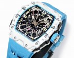 Richard Mille 』Rm 3系列已发布5款产品 Ddd 一体机芯制作 Ddd 纤薄壳套13.5 Mm DDD 表壳采用超轻耐磨的石英碳纤维Ntpt与碳纤维Tpt制作,分别为:蒂芙尼蓝Ntpt. 暴力黄Ntpt. 白色Ntpt.蓝色Ntpt.黑色Tpt DDD 均使用自动上链机芯,从正面能够直接看到机芯的镀黑、倒角、抛光、拉丝、喷砂等手工润饰细节。 DDD 轻量化材质戴起来毫无负担,运动风设计混搭休闲装、辣妹裙都超搭,甜酷平衡得刚刚好! Ddd 细节控狂喜!利落的线条+清晰表盘,颜值和实用性双在线