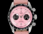 T Factory 帝舵 Tudor Black Bay Chrono系列是一款融合潜水表传统与赛车计时功能的混合型腕表,以其复古美学与现代技术著称。以下是该系列的主要特点及型号简介: DDD 设计灵感与风格 DDD 表盘设计灵感源自 年代帝舵潜水表和标志性“雪花”指针,镜面使用蓝宝石锅盖玻璃更显突出,同时向 年首款计时码表Oysterdate致敬。 DDD 测速外圈:配备哑光黑色阳极氧化铝测速计字圈,适合赛车计时功能 DDD 表盘选择:提供最新款 杰伦粉-蒂芙尼蓝可选 DDD 表壳:41毫米磨砂及磨光3