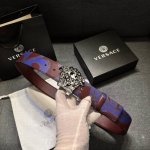 / 特 范思哲。宽4.0Cm 旋转扣,双面腰带,采用小牛皮制成,金色搭扣。饰有品牌标志性的美杜莎头像。饰有的 Versace Allover 印花。