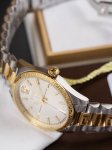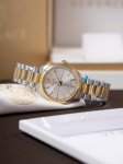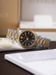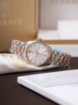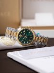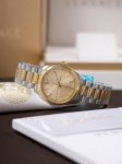 金 Versace Millenyium Lady腕表,表壳上 12 点位置饰有品牌标志性Medusa和Versace Logo,彰显力量与精致感。内表盘、表圈环以及金属圈雕刻有Greca图案,设计优雅。所有Versace腕表均有“瑞士制造”标志。所有不锈钢均为可回收材料。 表壳:精钢表壳,表圈环饰有Greca 表盘:绿色玑镂刻花表盘,12点位置饰有Versace Logo和Medusa 内圈饰有Greca 表带:双色 Ss&In 表带,配以蝴蝶扣以及Greca细节 机芯:进口两针石英机芯